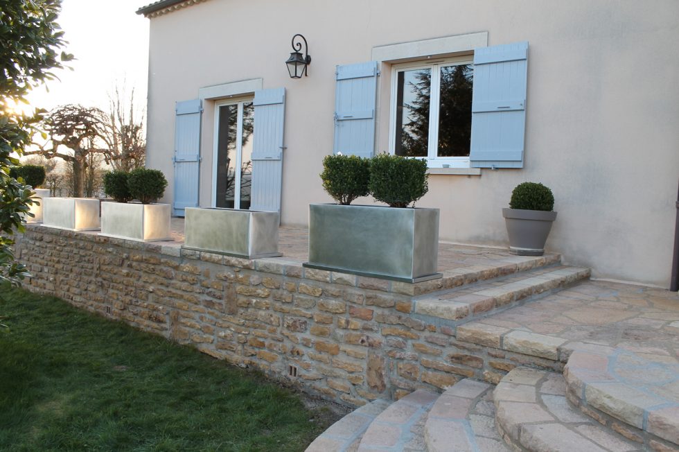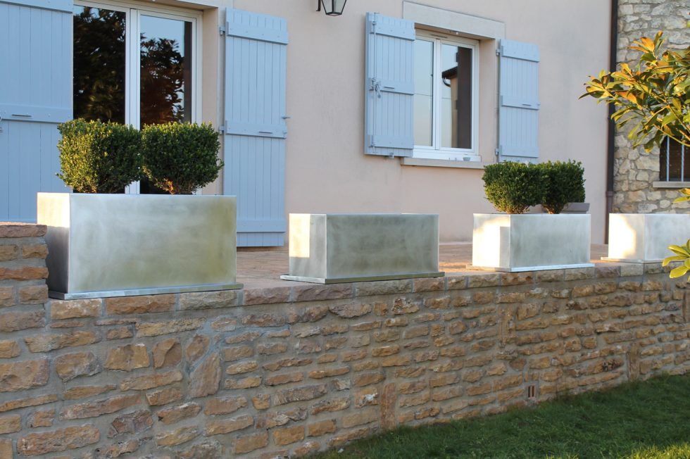 Le zinc se plaît aussi très bien au jardin. Jardinières, cache-pots, mais aussi tables de rempotage, fontaines, bassins ou mobilier d’extérieur, le zinc est un précieux allié du décor et de l’aménagement. Intemporel, il se plie à tous les styles, du rétro au design le plus contemporain et se marie avec simplicité et élégance à l’eau, au bois, à la pierre et au monde végétal qu’il magnifie.